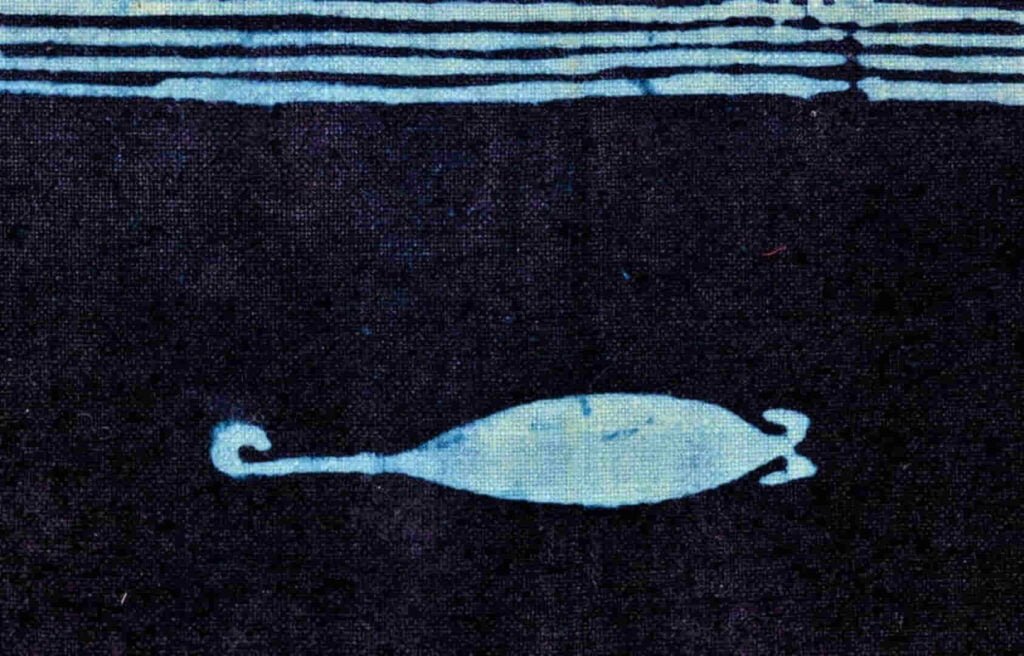 Este es un emblema de justicia que se colocaba así, con la insignia que lo rubrica, esa especie de lanza con puntas de tridente o Kpa tu, ‘todos en uno’. Lo que me contaron es que siempre estaba detrás del Fon antes de cualquier dictamen, para tal vez infundir temor y que no se mintiera en principio, pero en el fondo, el temor a ser encausado y que el pelo pasara a formar parte de la tupida urdimbre, parece que bastaba para pensarse mejor el paso a dar.