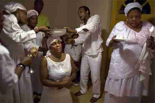 Los hounsi, o iniciados, lavan su cuerpo a la par que limpian y preparan su espíritu.