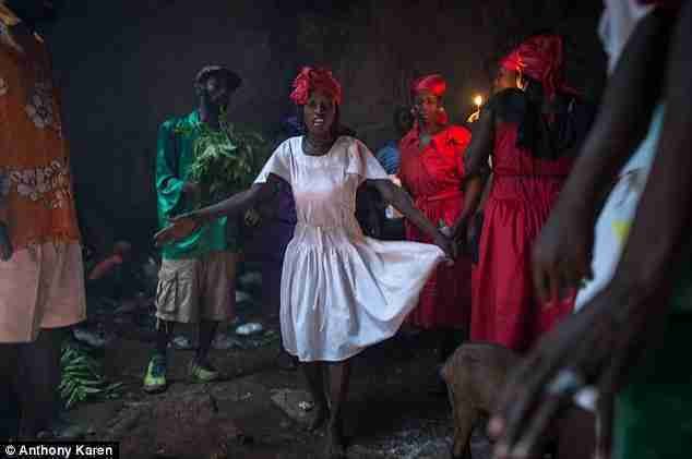 Despojados de sus ropas, niños, mujeres y hombres se bañan durante horas, frotándose el cuerpo con el aceite resultante de la presión de las hojas del llamado árbol de Trois Paroles, “las tres palabras”.