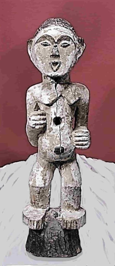 Son muy raras las figuras Vuvi que normalmente guarda el nganga, el médico o brujo. Las hay de dos tipos, las que utilizan las mujeres en los rituales de paso, para enseñarles la manera de tener un buen parto o las de relicario, que no dejan de ser funerarias.