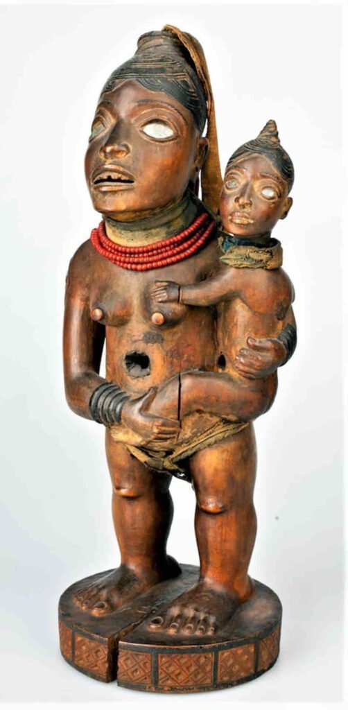 “El escrutinio de las esculturas hace evidente que sus autores mostraron, de manera perspicaz, la relación humana por excelencia como metáfora de la dinámica del poder entre este mundo y el de los antepasados; entre los fundadores del clan y sus descendientes; y entre las madres y su progenie. Esta imagen se basa en la profunda conexión de una madre y su bebé dependiente, como un manifiesto de la idea kongo del dembongo bantú, o riqueza en las personas”.