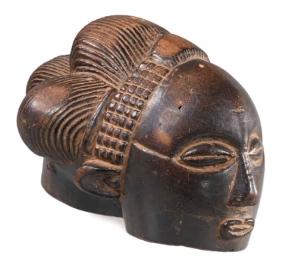 Y no es sorprendente, ya que este tipo de copa con forma de cabeza humana, cuyos bordes para beber, tiene dos, están situados en lo que sería el cuello, son de los objetos de la regalía real luba tal vez los más inusuales. El ejemplar de estas tres fotos es muy similar al de la foto de encabezamiento subastado en Sotheby’s en 2010 que saliendo en 75.000 € alcanzó los 161.500 €. Esto no sorprende ahora pues a buen seguro batirá records cuando sea subastada en Octubre del 2019 en Christie´s. Creo que las reservas a pasar de lo que falta echan humo.