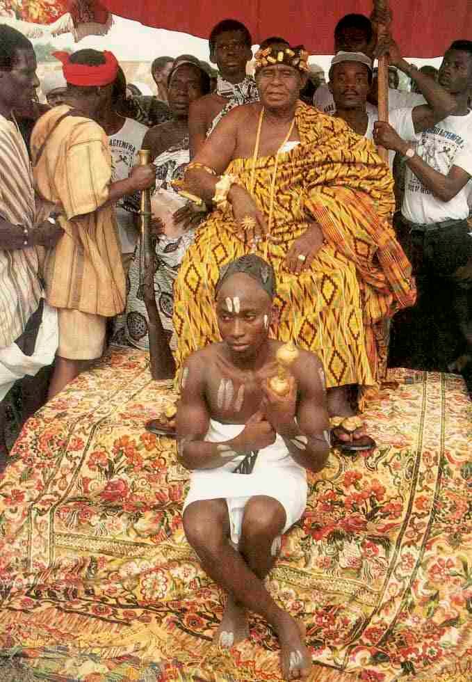 La membresía real entre los Akan se determina por la relación que el rey tiene con la tierra. Cualquier traza de descendencia de un miembro fundador de un pueblo o ciudad, se puede considera con derecho a privilegios reales